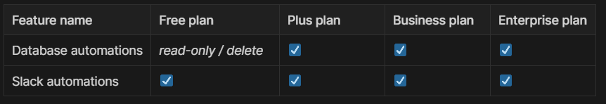 Notion database automations are native, light-weight building blocks that enable you to develop automated workflows directly from your Notion databases. As of their release, these automations are only event-based and can be applied to any database on the Notion Plus, Business, or Enterprise plan. Notion free plan users can only read/delete database automations that are part of templates they duplicated, as well as create/edit Slack automations. As explained by the Notion team: “Database automations will be available for Plus, Business, and Enterprise plan users. Users on the Free plan will be able to access database automations through templates in the Template Gallery – they will be able to use or delete automations from templates, but won’t be able to edit them. Slack automations will still be available to all users, regardless of plan type.”